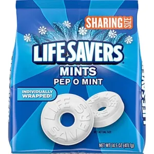 The LIFE SAVERS Pep O Mint Mints in the 14.5-ounce sharing size bag are a popular choice among people. These individually wrapped breath mints are loved for their refreshing peppermint flavor that lasts a while. With enough mints to share in a candy dish at home or the office, guests will enjoy finding their favorite mint. The convenient packaging ensures the mints remain fresh and ready to enjoy. People appreciate the flavor and long-lasting nature of these mints, making them a refreshing choice for freshening breath.