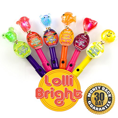 Light-Up Lollipop - Lollibright - Fun and Safe - Made from Natural Sugar - Six Flavors/ Characters - Fun And Safe - No MSG - Gluten Free - Added Vitamin C - Perfect for Birthday Parties