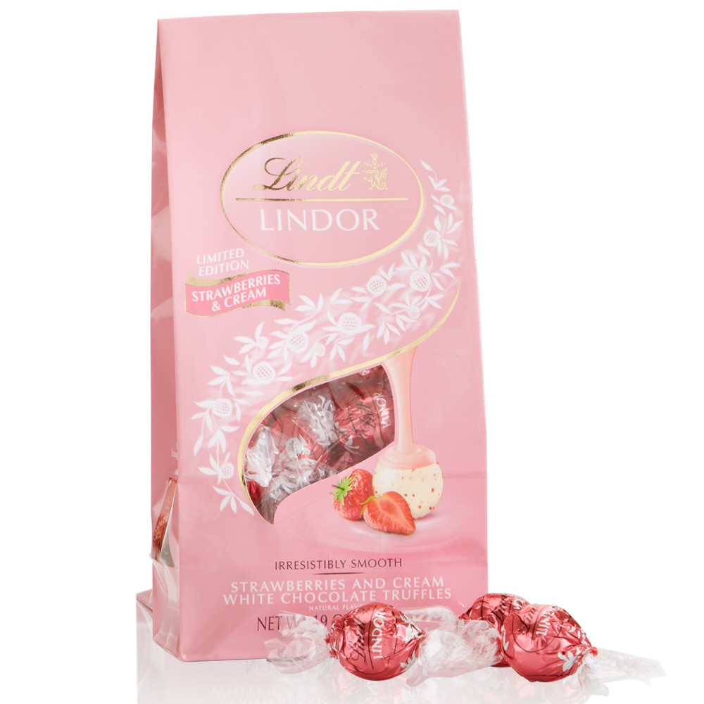LINDT, LINDOR, WHITE CHOCOLATE TRUFFLES, STRAWBERRIES AND CREAM