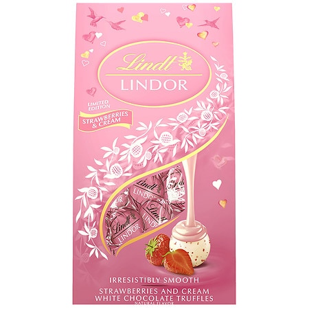 LINDT, LINDOR, WHITE CHOCOLATE TRUFFLES, STRAWBERRY & CREAM