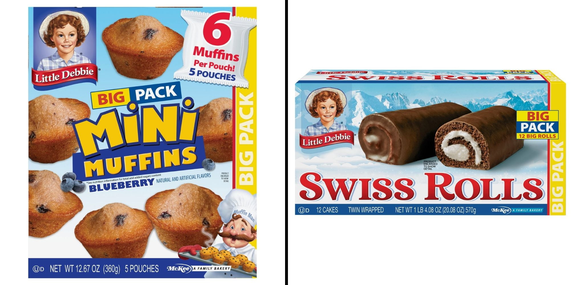 LITTLE DEBBIE Blueberry Mini Muffins Big Pack 5 ct & Little Debbie Swiss Rolls - Big Pack, Twin Wrapped 12 ct
