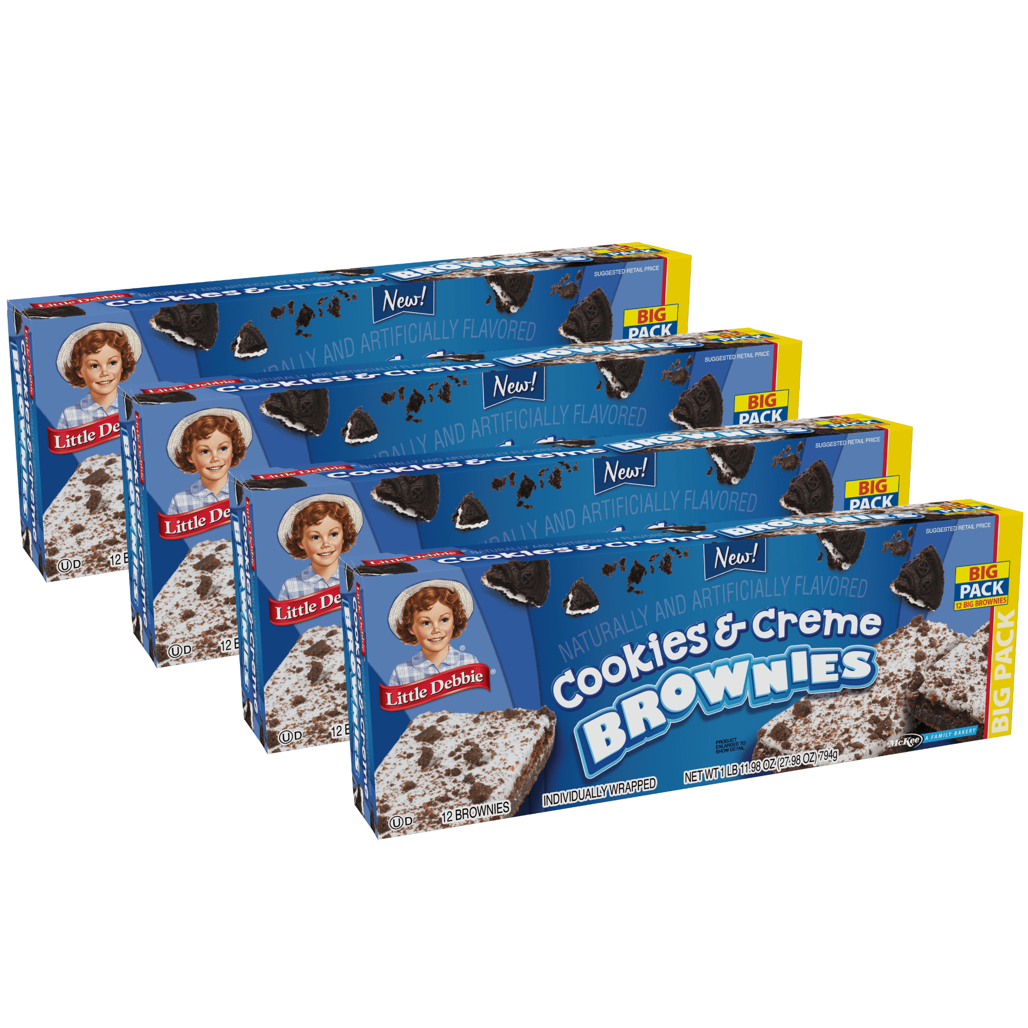 Little Debbie Cookies & Creme Brownies Big Pack, 4 Boxes, 48 Individually Wrapped Brownies