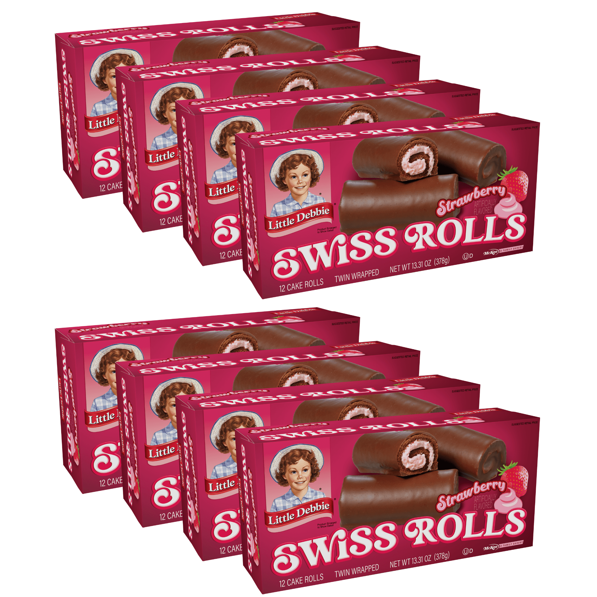 Little Debbie Strawberry Swiss Rolls, 8 Boxes, 96 Cake Rolls