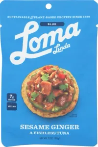 Loma Linda Blue - Plant-Based Meal Solution - Sesame Ginger Fishless Tuna (3 oz.) (Pack of 6) - Non-GMO