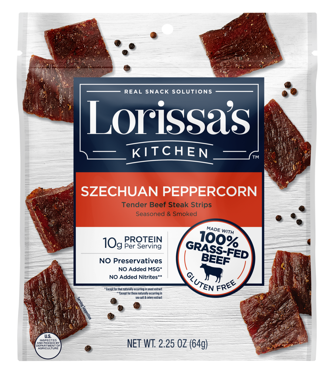 Lorissas Kitchen Steak Strips, Premium, Seasoned & Smoked Beef, Szechuan Peppercorn