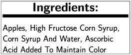 INGREDIENTS: APPLES, HIGH FRUCTOSE CORN SYRUP, CORN SYRUP AND WATER. ASCORBIC ACID ADDED TO MAINTAIN COLOR.