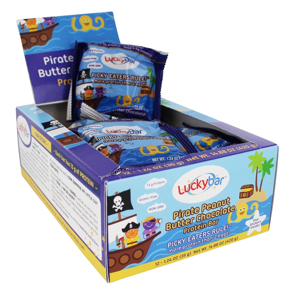 Luckybar Protein 13G Kids Bars Gluten Free Pirate Peanut Butter Chocolate -- 12 Bars