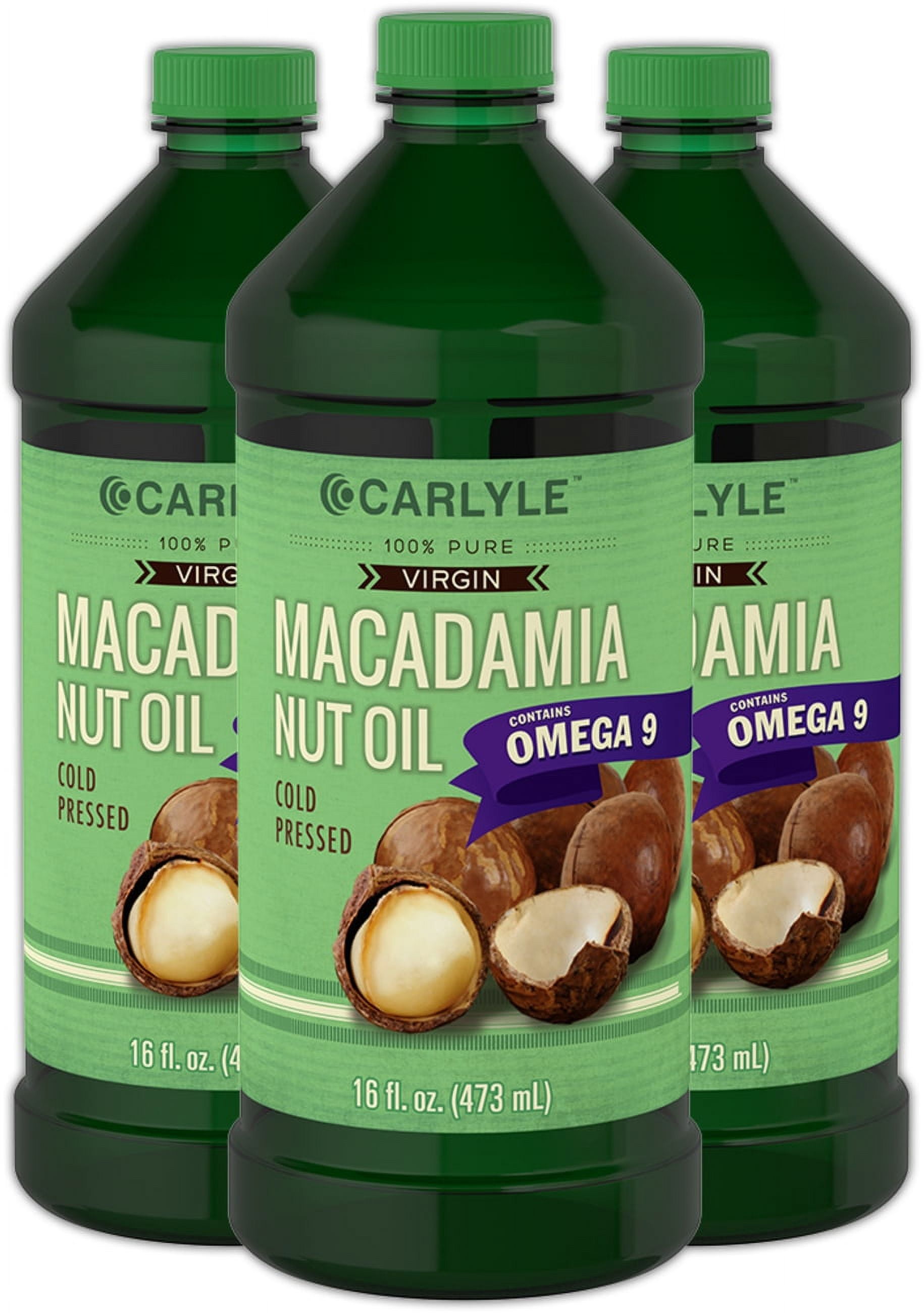 Macadamia Nut Oil | 3 x 16 oz Bottles | Premium Cold Pressed | 100% Pure Virgin | Food Grade | Vegetarian, Non-GMO, Gluten Free | Safe for Cooking, Great for Hair and Skin | by Carlyle
