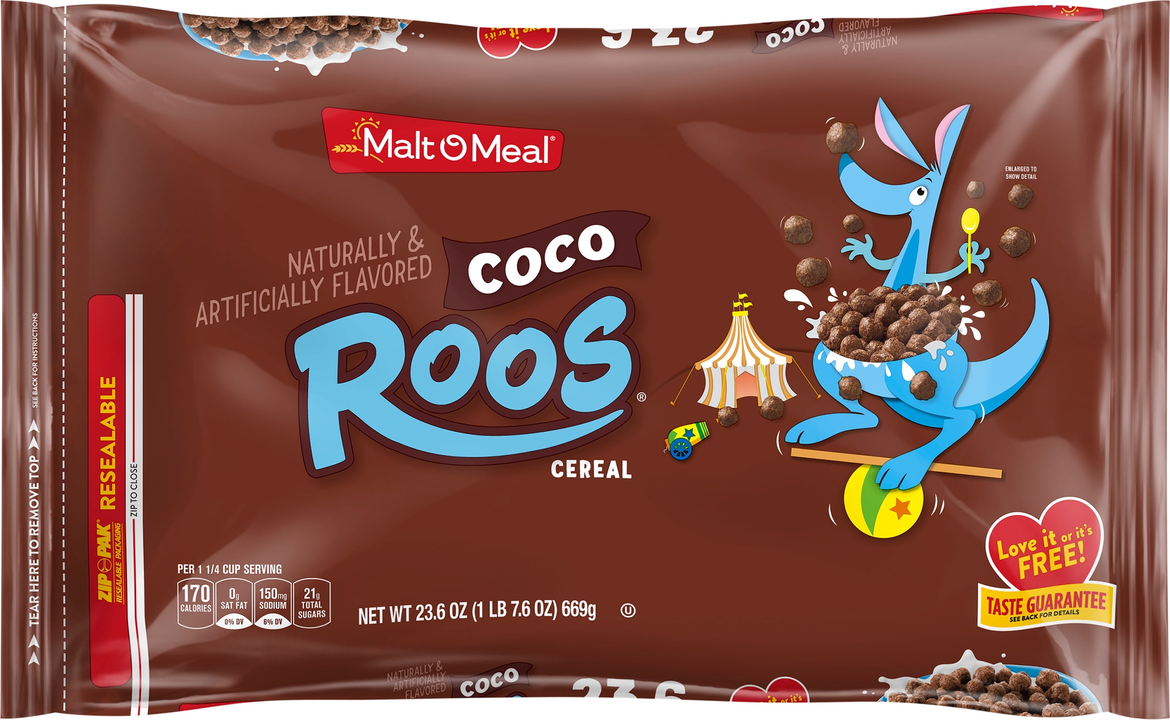 Malt-O-Meal, Family Pack, Crispy, Coco Roos Breakfast Cereal, 23.6 oz Plastic Bag