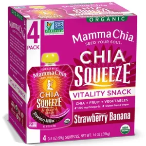 Mamma Chia, Organic Chia Squeeze, Vitality Snack, Strawberry Banana, 4 Squeezes, 3.5 oz (99 g) Each(pack of 12)