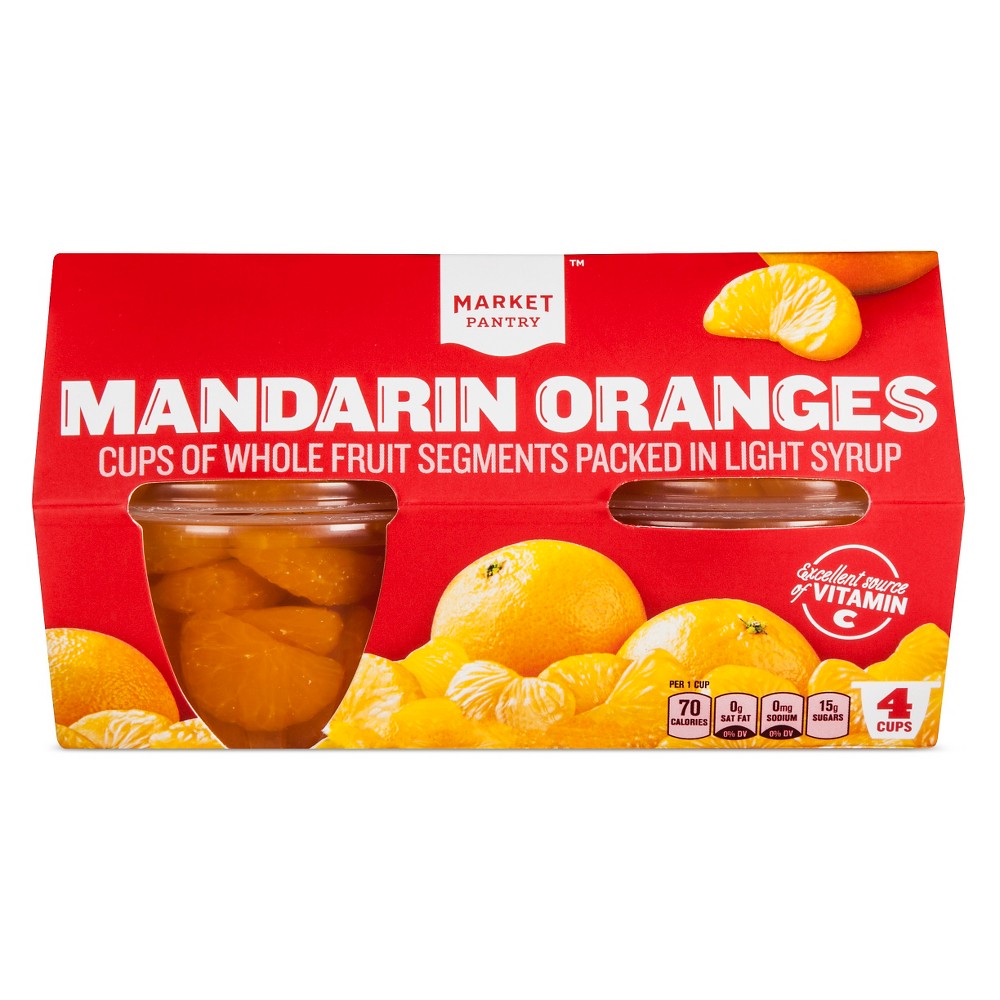 MANDARIN ORANGES CUPS OF WHOLE FRUIT SEGMENTS PACKED IN LIGHT SYRUP
