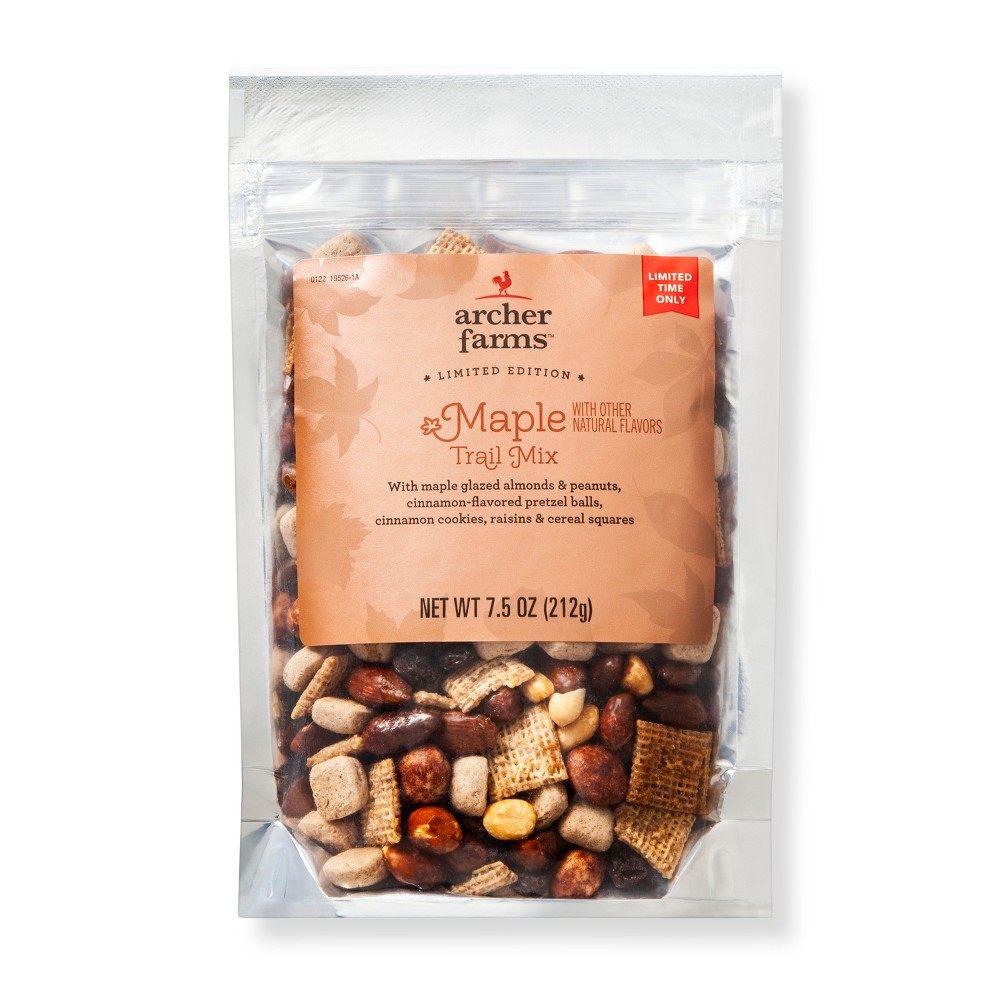MAPLE CINNAMON RAISIN WITH MAPLE GLAZED ALMONDS & PEANUTS, CINNAMON-FLAVORED PRETZEL BALLS, CINNAMON COOKIES, RAISINS & CEREAL SQUARES TRAIL MIX, MAPLE CINNAMON RAISIN is available at 1 retailer