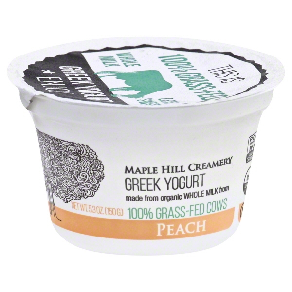 Maple Hill Creamery Organic 100% Grass Fed-Cows Peach Greek Yogurt, 5.3 Oz.