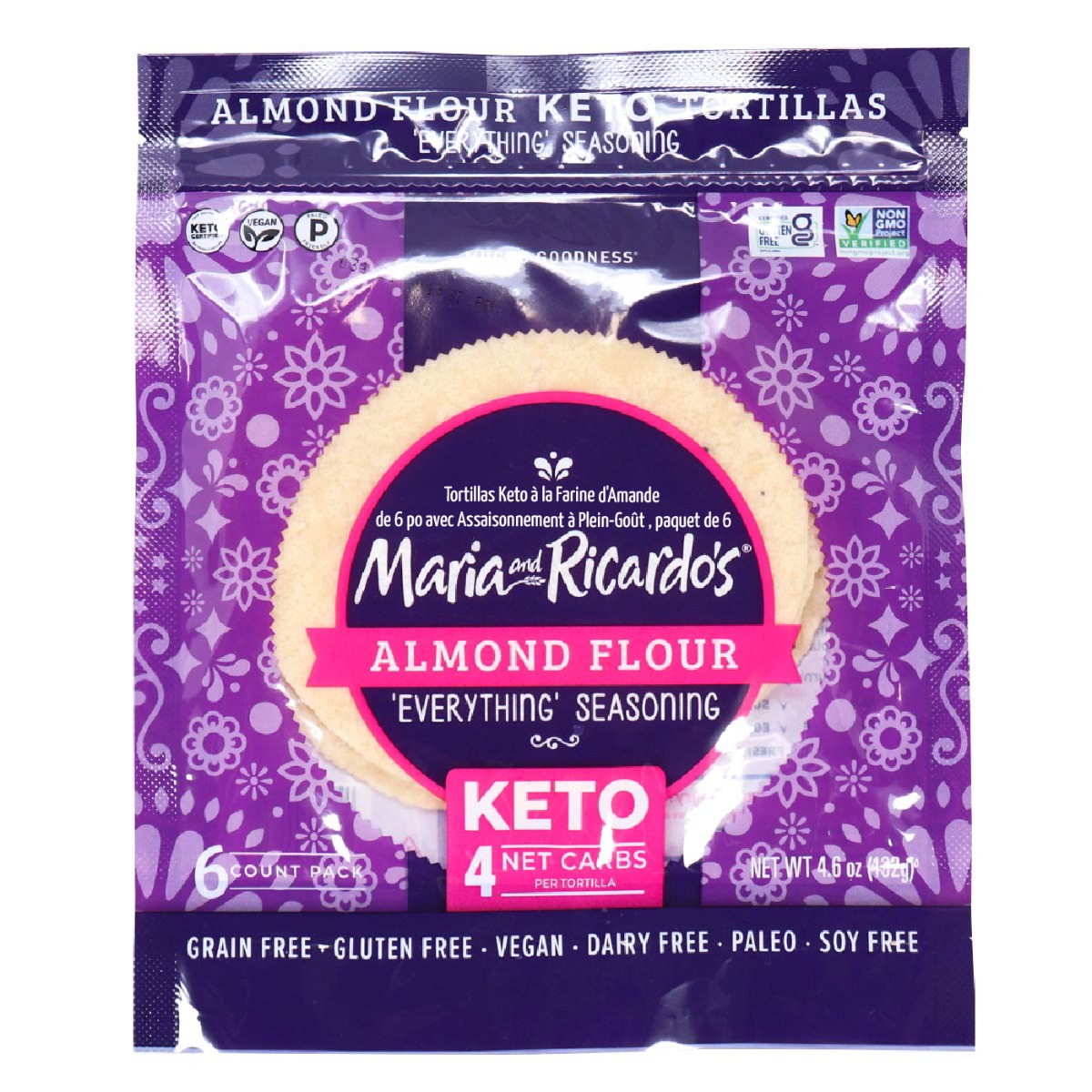 Almond Flour, Water, Tapioca Starch, Psyllium Fiber, Coconut Flour, Apple Cider Vinegar, Sea Salt, Everything Seasoning, (sesame Seeds, Onion Powder, Garlic Powder, Salt, Poppy Seeds), Xanthan Gum. Contains Almond And Coconut. Made In A Facility That Processes Wheat And Soy.