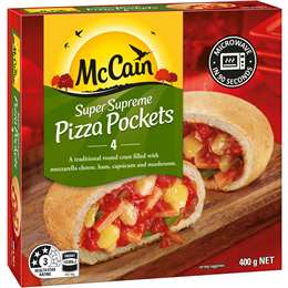 Wheat Flour, Water, Mozzarella And Cheddar Cheese, Milk, Salt, Starter Culture, Non Animal Rennet, Non Animal Enzyme, Manufactured Ham, Pork, Potato Starch, Soy Protein, Pork Protein, Mineral Salts, Thickener (407A), Antioxidant, Hydrolysed Vegetable Protein, Fermented Rice, Thickener, Milk Solids, Sugar, Emulsifier, Canola Oil, Tomato Paste, Capsicum, Onion, Mushrooms, Yeast, Vegetable Shortening, Thickeners, Vegetable Powders (Wheat), Herbs, Spices, Emulsifier (322 (Soy)), View More