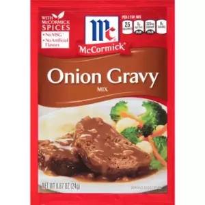 Wheat Starch, Onion, Salt, Beef Fat, Enriched Wheat Flour (Flour, Niacin, Iron, Thiamine Mononitrate, Riboflavin, Folic Acid), Hydrolyzed Corn Gluten, Soy Protein and Wheat Gluten, Corn Syrup Solids, Yeast Extract, Caramel Color, Garlic, Spices, Sodium Caseinate (Milk), Disodium Inosinate and Guanylate (Flavor Enhancers), and Natural Flavor.