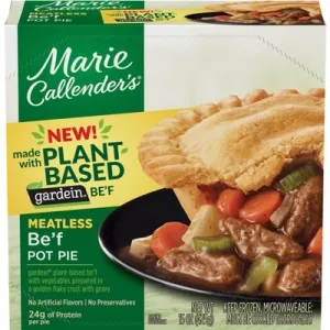 MEATLESS BE'F GARDEIN PLANT-BASED BE'F WITH VEGETABLES PREPARED IN A GOLDEN FLAKY CRUST WITH GRAVY POT PIE, MEATLESS BE'F