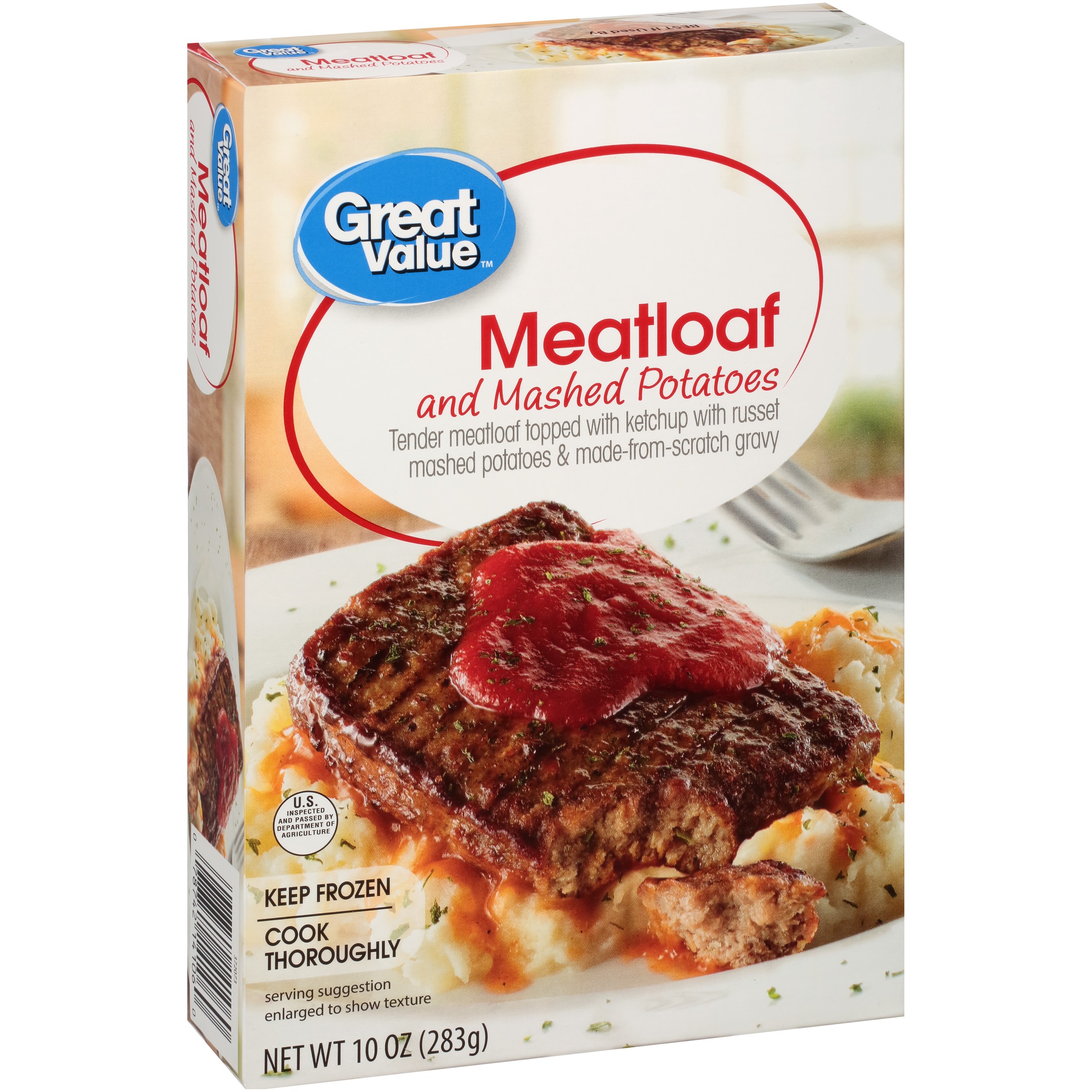 MEATLOAF AND MASHED POTATOES TENDER MEATLOAF TOPPED WITH KETCHUP WITH RUSSET MASHED POTATOES & MADE-FROM-SCRATCH GRAVY, MEATLOAF AND MASHED POTATOES