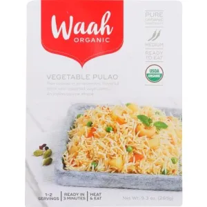 WATER, BASMATI RICE* (24.20%), POTATOES*, CARROTS*, ONIONS*, COCONUT MILK*, SUNFLOWER OIL*, TOMATOES*, COCONUT*, PEAS-DRIED*, GINGER*, GARLIC*, SALT, CASHEW NUTS*, GREEN CHILLIES*, CORIANDER LEAVES*, PEPPERMINT*, CLOVES*, CINNAMON*, BAY LEAVES*, CARDAMOM*, MACE*, TURMERIC POWDER*.