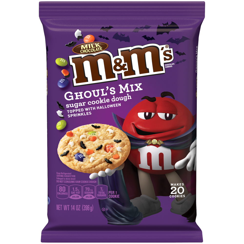 Wheat Flour, Sugar, Vegetable Oil (Palm Oil, Canola Oil), M&m's (R), Milk Chocolate Candies (Milk Chocolate (Sugar, Chocolate, Skim Milk, Cocoa Butter, Lactose, Milkfat, Soy Lecithin, Salt, Artificial And Natural Flavors), Sugar, Cornstarch, Corn Syrup, Dextrin, Coloring (Includes Yellow 6, Yellow 5, Blue 1, Yellow 6 Lake, Yellow 5 Lake, Blue 1 Lake, Red 40, Red 40 Lake, Blue 2 Lake, Blue 2), Carnauba Wax, Gum Acacia), Water, Halloween Sprinkles (Sugar, Rice Flour, Palm Oil, Palm Kernel Oil, Corn Starch, Cellulose Gum, Carrageenan, Confectioner's Glaze (Lac-resin), Red 40, Yellow 6, Blue 1, Yellow 5), Cornstarch, Eggs, Salt, Baking Soda, Sodium Aluminum Phosphate, Natural Flavor, Vanilla Extract, Contains Egg, Wheat, Milk, Soy, May Contain Peanuts, Pecans, Walnuts, Macadamia Nuts, Coconut