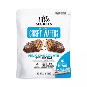 MILK CHOCOLATE WITH SEA SALT MINI CREME FILLED CRISPY WAFERS, MILK CHOCOLATE WITH SEA SALT