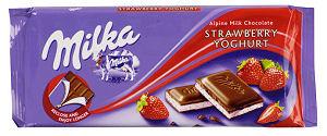 Milka Milk Chocolate Filled with Strawberry and Yogurt, 100g