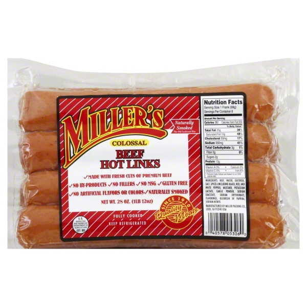 Miller Packing Skinless Colossal Beef Hot Links, 28 Oz.