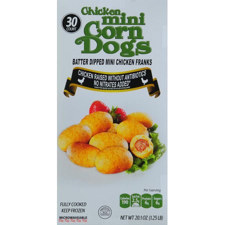 BATTER INGREDIENTS: WATER, ENRICHED WHEAT FLOUR AND ENRICHED DEGERMED YELLOW CORN MEAL [BOTH ENRICHED WITH NIACIN, REDUCED IRON, THIAMIN MONONITRATE, RIBOFLAVIN, FOLIC ACID], SUGAR, YELLOW CORN MEAL, SALT, LEAVENING [SODIUM ACID PYROPHOSPHATE, SODIUM BICARBONATE], DRIED HONEY [HONEY SOLIDS, MALTODEXTRIN], SOYBEAN OIL, CORN STARCH, MODIFIED FOOD STARCH, SOY FLOUR, ONION POWDER, NONFAT DRY MILK, EGG. COOKED IN SOYBEAN OIL. FRANK INGREDIENTS: NO ANTIBIOTICS ADDED MECHANICALLY SEPARATED CHICKEN, WATER, SUGAR. CONTAINS 2% OR LESS OF: SEA SALT, SALT, FLAVORINGS, BEEF JUICE POWDER (RED BEET JUICE CONCENTRATE, MALTODEXTRIN, CITRIC ACID), SODIUM CARBONATE, PAPRIKA AND PAPRIKA EXTRACT, MOLASSES POWDER (SUGAR CANE MOLASSES, MALTODEXTRIN), TART CHERRY POWDER, SODIUM NITRITE. PREDUST INGREDIENTS: ENRICHED WHEAT FLOUR (ENRICHED WITH NIACIN, REDUCED IRON, THIAMINE MONONITRATE, RIBOFLAVIN, FOLIC ACID), WHEAT FLOUR, WHEY, SALT.
