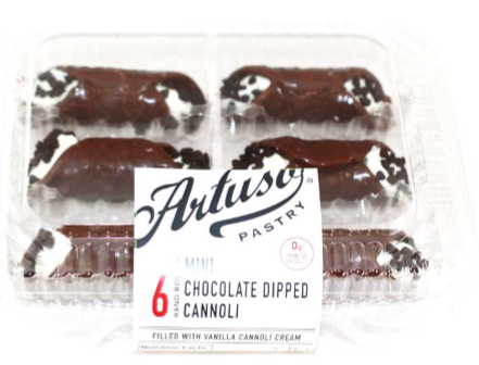 RICOTTA IMPASTATA CHEESE (MILK, STARTER, SALT), CHOCOLATE COATING (SUGAR, SOYBEAN OIL, COCOA, CHOCOLATE LIQUOR, SALT AND ARTIFICIAL FLAVOR), SUGAR, ENRICHED WHEAT FLOUR (WHEAT FLOUR, MALTED BARLEY FLOUR, NIACIN, IRON, THIAMINE MONONITRATE, RIBOFLAVIN, FOLIC ACID), CHOCOLATE CHIPS (SUGAR, UNSWEETENED CHOCOLATE, COCOA BUTTER, SOY LECITHIN (AN EMULSIFIER), NATURAL VANILLA EXTRACT), VEGETABLE SHORTENING (PALM AND/OR COTTONSEED AND/OR SOY OILS), WATER, EGGS, VINEGAR, CINNAMON, NATURAL FLAVOR.
