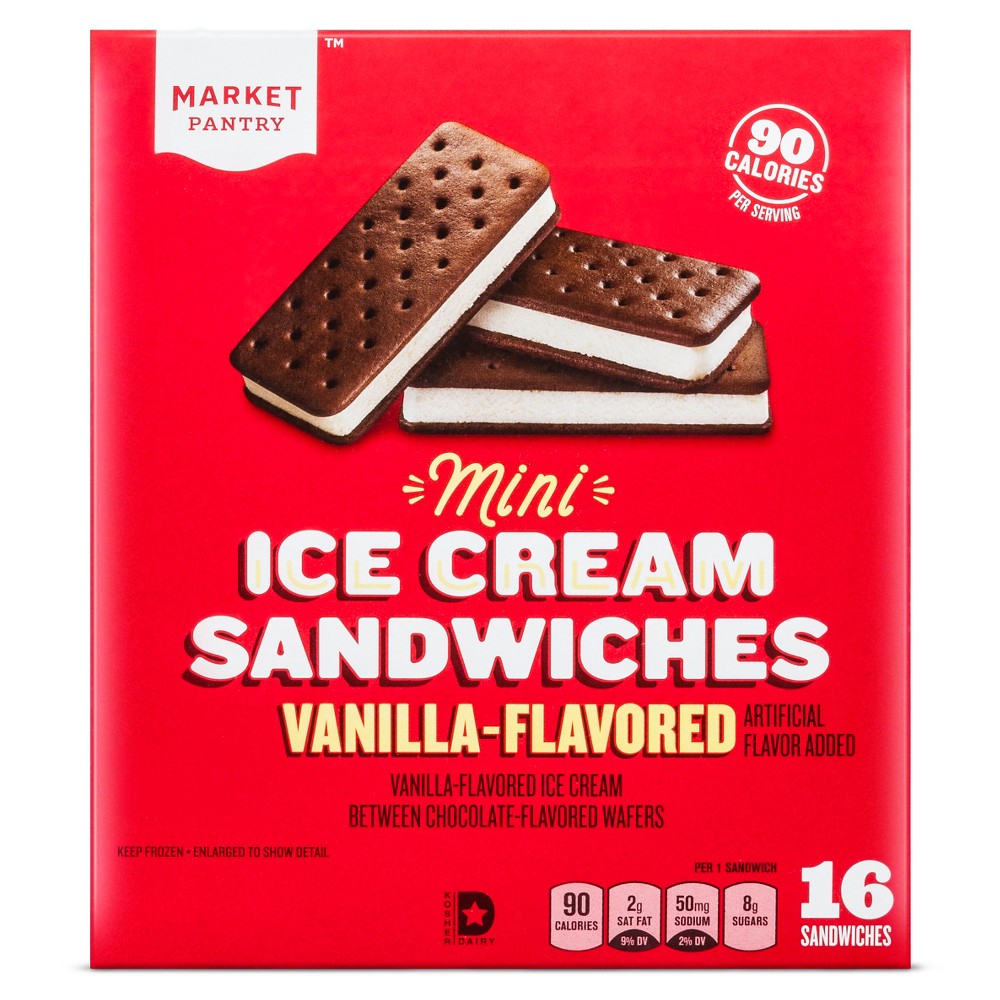 MINI VANILLA-FLAVORED ICE CREAM BETWEEN CHOCOLATE-FLAVORED WAFERS SANDWICHES, VANILLA is available at 1 retailer