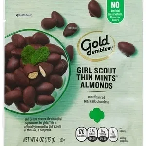 MINT FLAVORED REAL DARK CHOCOLATE THIN MINTS ALMONDS, MINT