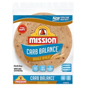 Mission Carb Balance Tortillas Whole Wheat Super Soft Burrito Bag 8 Count - 20 Oz
