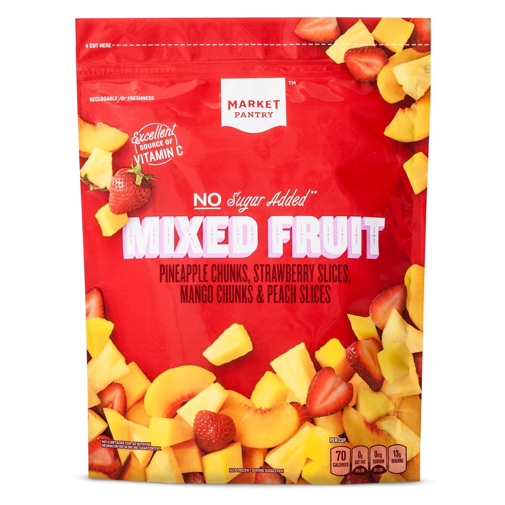 PINEAPPLE CHUNKS, SLICED STRAWBERRIES, MANGO CHUNKS, SLICED PEACHES, ASCORBIC AND CITRIC ACID (TO PROMOTE COLOR RETENTION).