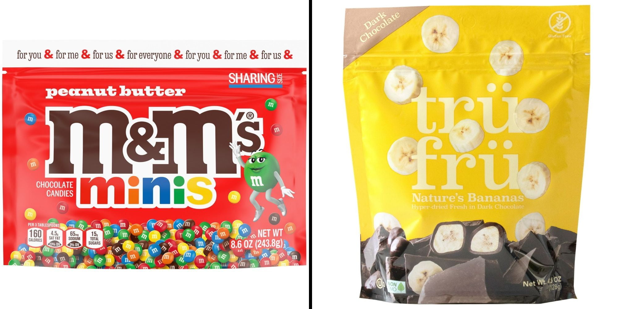 M&M'S Minis Peanut Butter Milk Chocolate Candy & Tru Fru Nature's Bananas - Dark Chocolate