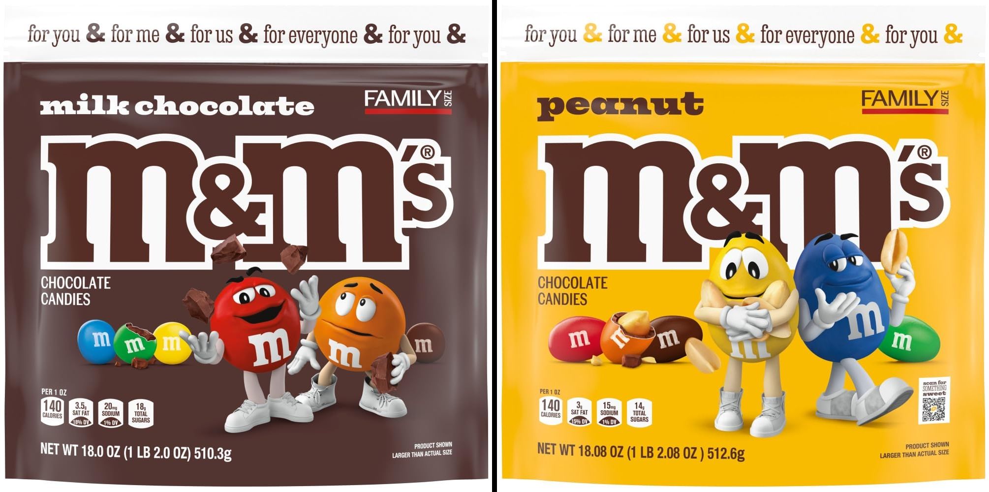 M&M'S Peanut Milk Chocolate 18.08 oz & M&M'S Milk Chocolate 18 oz Resealable Bulk Bags