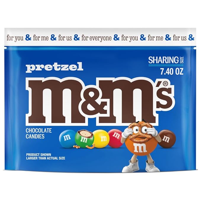 M&M'S Pretzel Milk Chocolate Candy, Sharing Size, 7.4 oz Resealable Bag