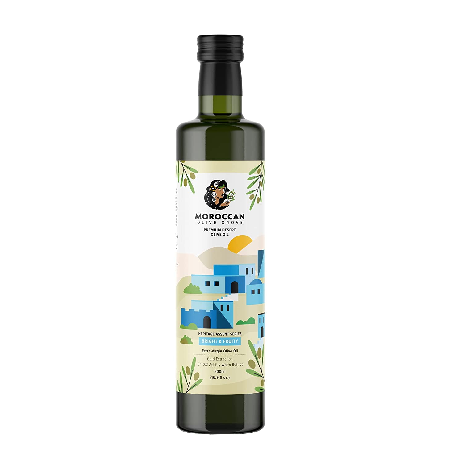 MOROCCAN OLIVE GROVE - Bright & Fruity - Premium Desert Extra Virgin Cold Extracted Olive Oil, 100% Single Origin from Morocco, Polyphenols Rich - 16.9 Fl oz (500ml)