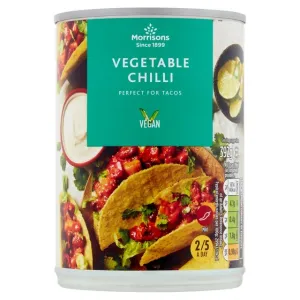 Reconstituted Tomato Purée, Red Pepper (15%), Onion, Red Kidney Beans (11%), Tomato (8%), Carrot (8%), Potato, Black Turtle Beans (5%), Tomato Juice, Spices (Coriander, Cumin, Paprika, Chilli Powder, White Pepper), Maize Starch, Rapeseed Oil, Water, Garlic Purée, Sugar, Coriander Leaf, Salt, Oregano, Acidity Regulator (Citric Acid), Made to a vegan recipe in a food preparation area that uses non-vegan ingredients
