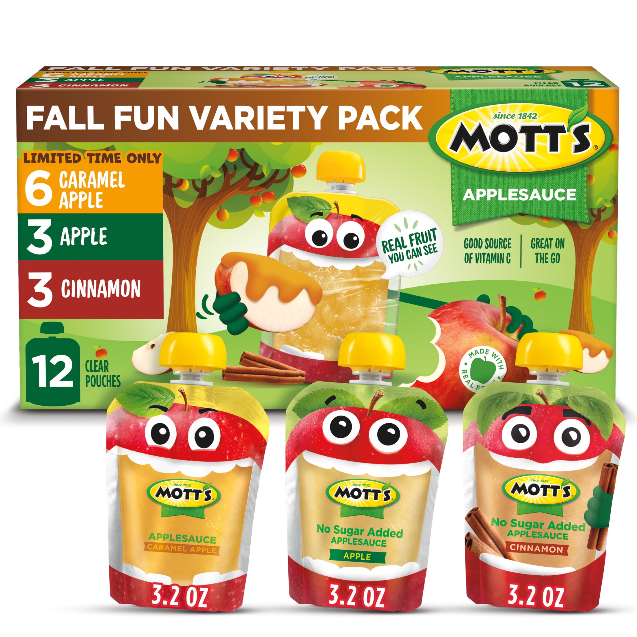 Mott's Fall Favorites Applesauce Variety Pack, 3.2 oz, 12 Count Clear Pouches
