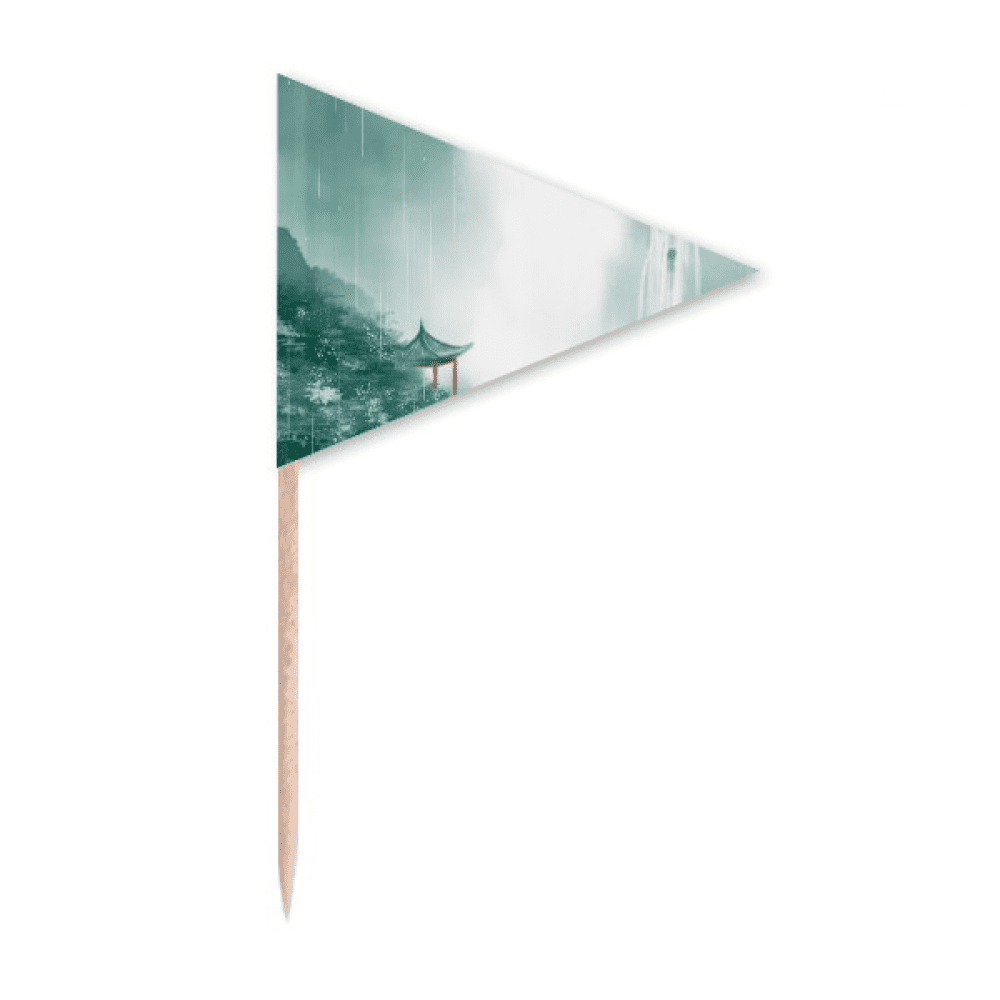 Mountain Rain Mo Chinese Watercolor Toothpick Triangle Cupcake Toppers Flag