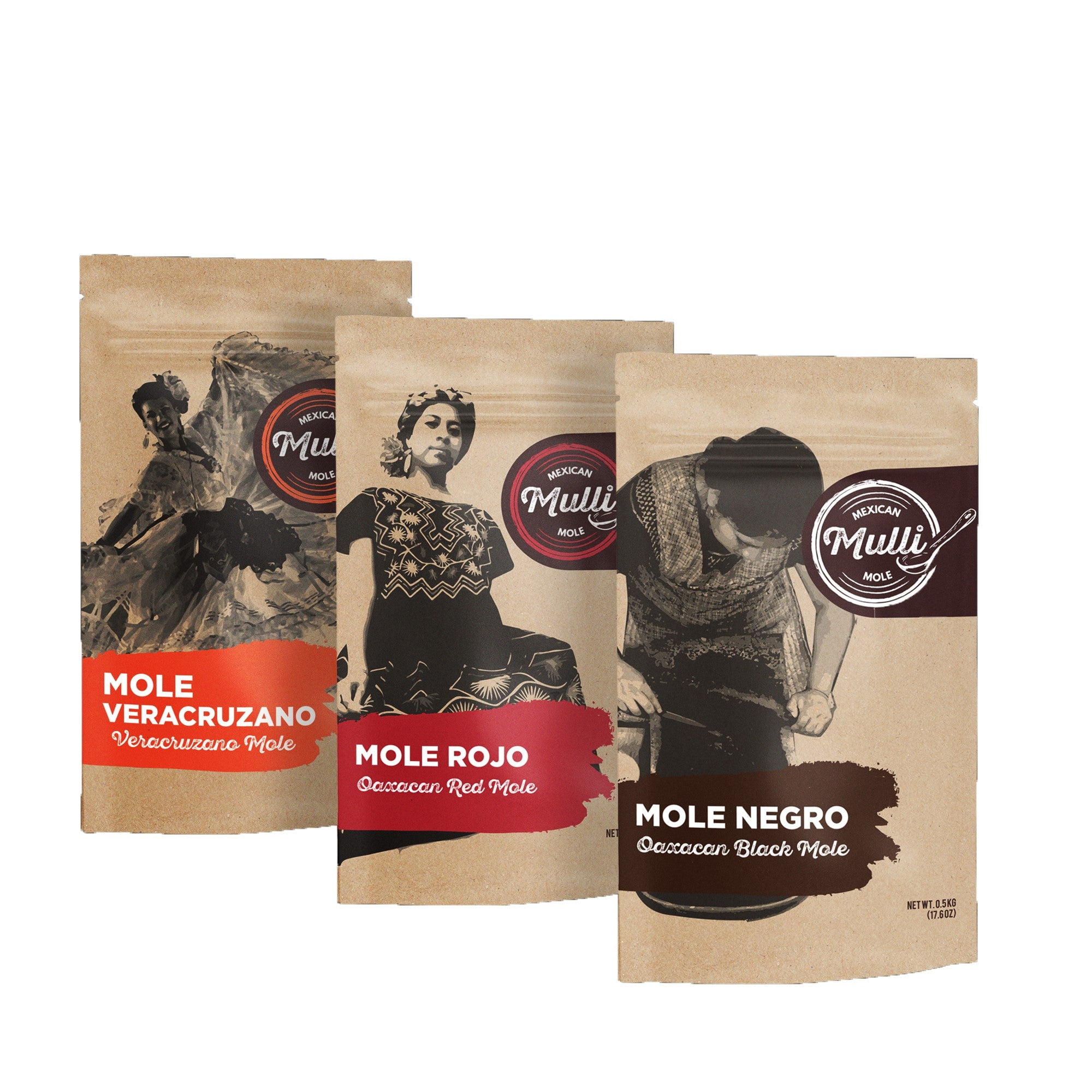 Mulli Mexican Mole - Mole 3 Pack Special - Mole Negro - Mole Veracruzano - Mole Rojo (3 Pack) 1.5 kilos 3.3 lbs