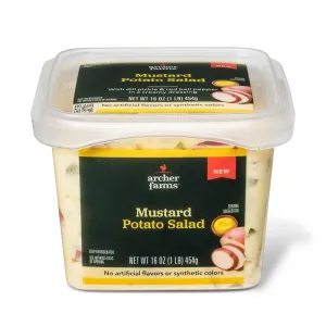 POTATOES, MAYONNAISE (SOYBEAN OIL, WATER, EGG YOLKS, VINEGAR, SALT), MUSTARD (WATER, VINEGAR, MUSTARD SEED, SALT, SUGAR, TURMERIC, PAPRIKA, GARLIC POWDER, SPICES, XANTHAN GUM, ANNATTO EXTRACT [COLOR], NATURAL FLAVOR), CELERY, DILL PICKLE RELISH (CUCUMBERS, DISTILLED VINEGAR, SALT, CALCIUM CHLORIDE, NATURAL FLAVORING, CONTAINS LESS THAN 2% OF: XANTHAN GUM, SODIUM BENZOATE [PRESERVATIVE], ALUM, TURMERIC, POLYSORBATE 80), ONION, WATER, SUGAR, RED BELL PEPPER, SALT, VINEGAR, MODIFIED CORN STARCH, POTASSIUM SORBATE (PRESERVATIVE), SODIUM BENZOATE (PRESERVATIVE), ANNATTO EXTRACT (COLOR), XANTHAN GUM.