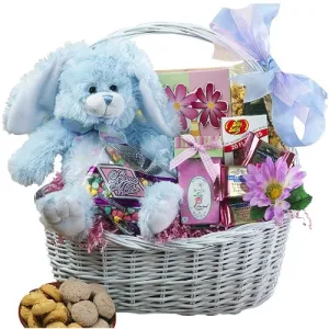 My Special Bunny Easter Gift Basket with Blue Plush Bunny Rabbit
