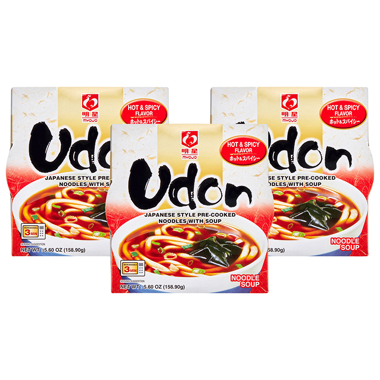 MYOJO, UDOR JAPANESE STYLE PRE-COOKED NOODLES WITH SOUP, HOT & SPICY, HOT & SPICY