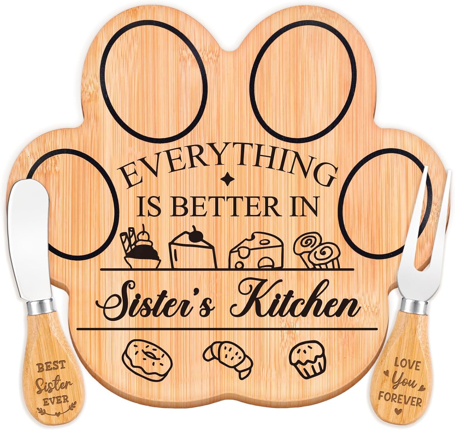 Myst Design Sister Birthday Gifts - Bamboo Cutting Board Set with Serving Utensils, Sister Gifts from Sister, Sister Gifts for Women, 'rything is Better in Sister's Kitchen'.