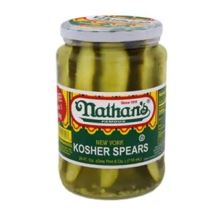 Crunchy, firm spears deliver a bold, tangy-briny flavor with a crisp snap; texture holds up in sandwiches and alongside burgers. Common uses include deli platters, snacking, and topping sandwiches. Customer reviews often cite reliable crunch and robust taste, with occasional mention of variable saltiness or uneven flavor intensity at times.
