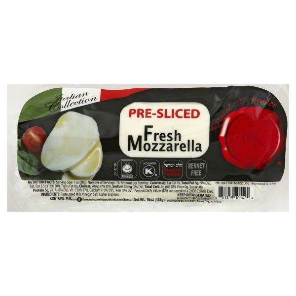 Natural & Kosher Pre-Sliced Fresh Mozzarella Cheese, 16 Oz.