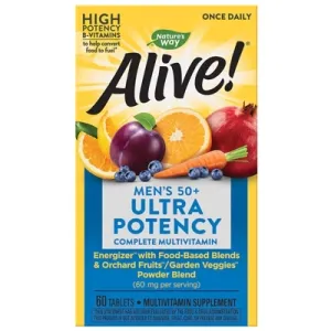 Nature's Way Alive! Once Daily Men's 50+ Ultra Potency Multi-vitamin & Whole Food Energizer Tablets, 60 Ct
