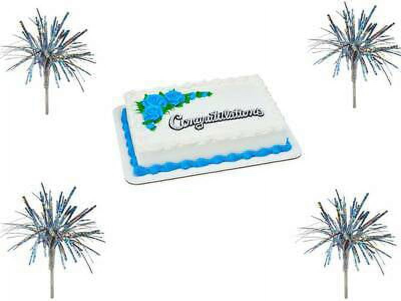 NCS Congratulations Silver Script Cake Topper PLUS 4 Silver Pom Pom Mylar Picks - Includes 12 Reflective Thank You Stickers
