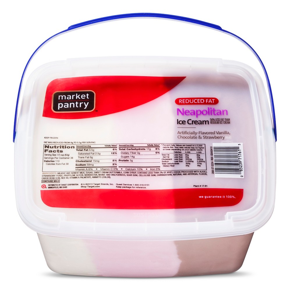 NEAPOLITAN REDUCED FAT ICE CREAM, VANILLA, CHOCOLATE & STRAWBERRY